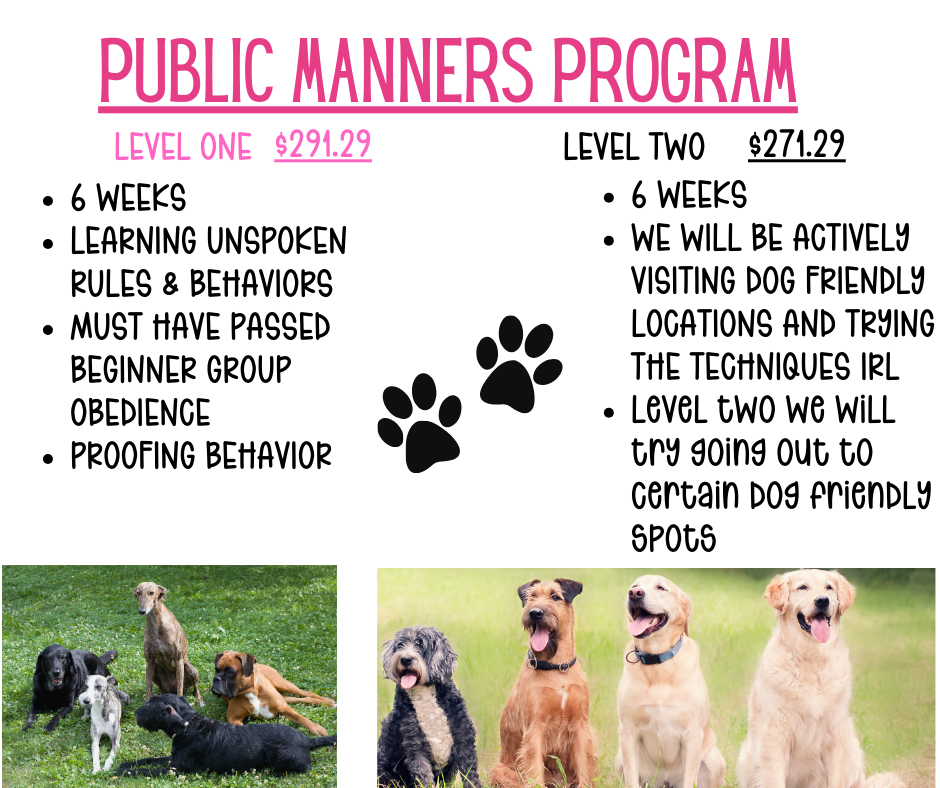 3. OUR GROUP CLASS SIZE are ALWAYS small in size. Group classes have a SEVEN (7) DOG CAP. If we pack too many dogs in the class someone is bound to fall through the cracks and we want to prevent that from happening as much as possible.